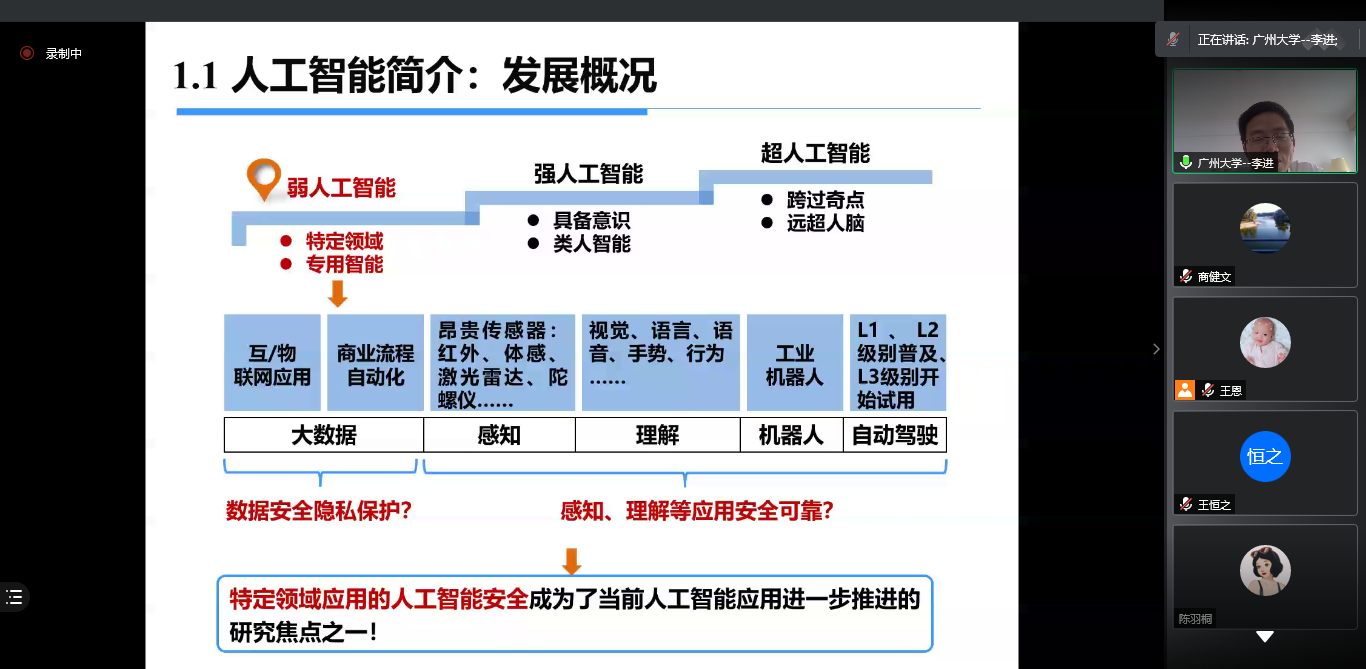 邀请,以线上形式作了题为“机器学习中的对抗与数据安全隐私”的学术报告。