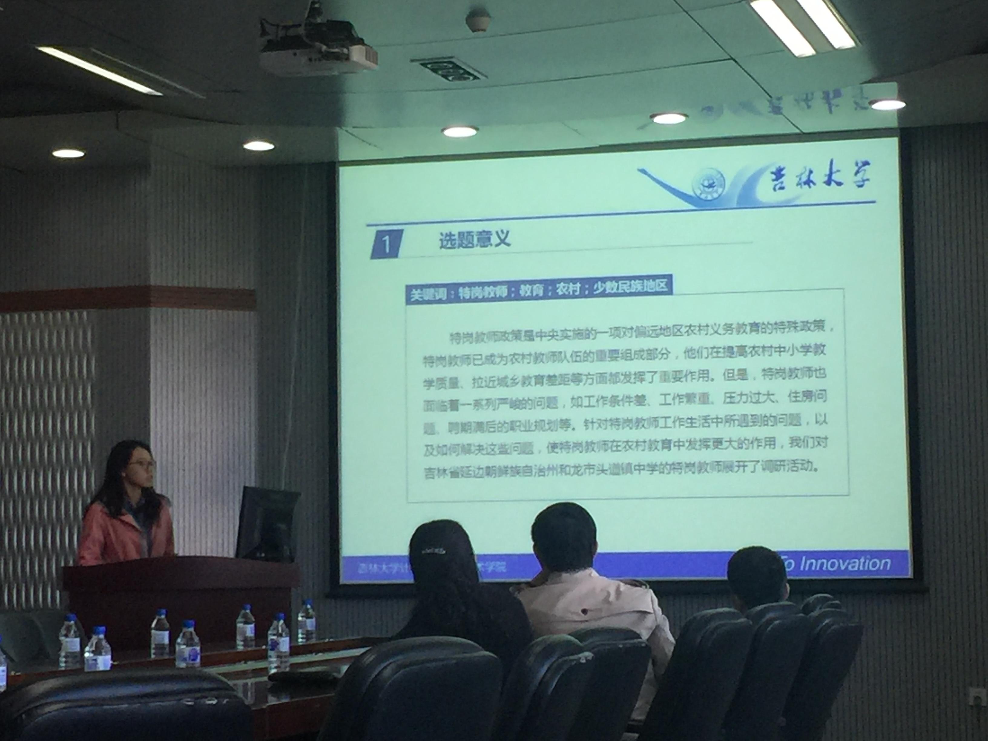 张仁胜同学所在的中国互联网发展趋势团队通过对已经毕业并且在北京互联网公司任职的同学进行面对面的交流,对行业现状及就业需求进行了深入剖析;岳晴同学所在的儿童安全防范意识调查团队利用暑假走访了丹东市的部分幼儿园和暑期托管班以及丹东市人口密集的景区,访问了238名儿童及36位家长。从基本安全知识,交通、食品和户外安全知识,对待陌生人的态度等层面进行访问,并针对结果给出了提高儿童安全防范意识的可行性建议;祁琪同学所在的少数民族地区特岗教师工作情况调查团队走访了和龙市头道镇头道中学,针对目前特岗教师多是大学毕业生,实践教学经验不足,一个人身兼数职,工作压力繁重情况,提出了改善建议。